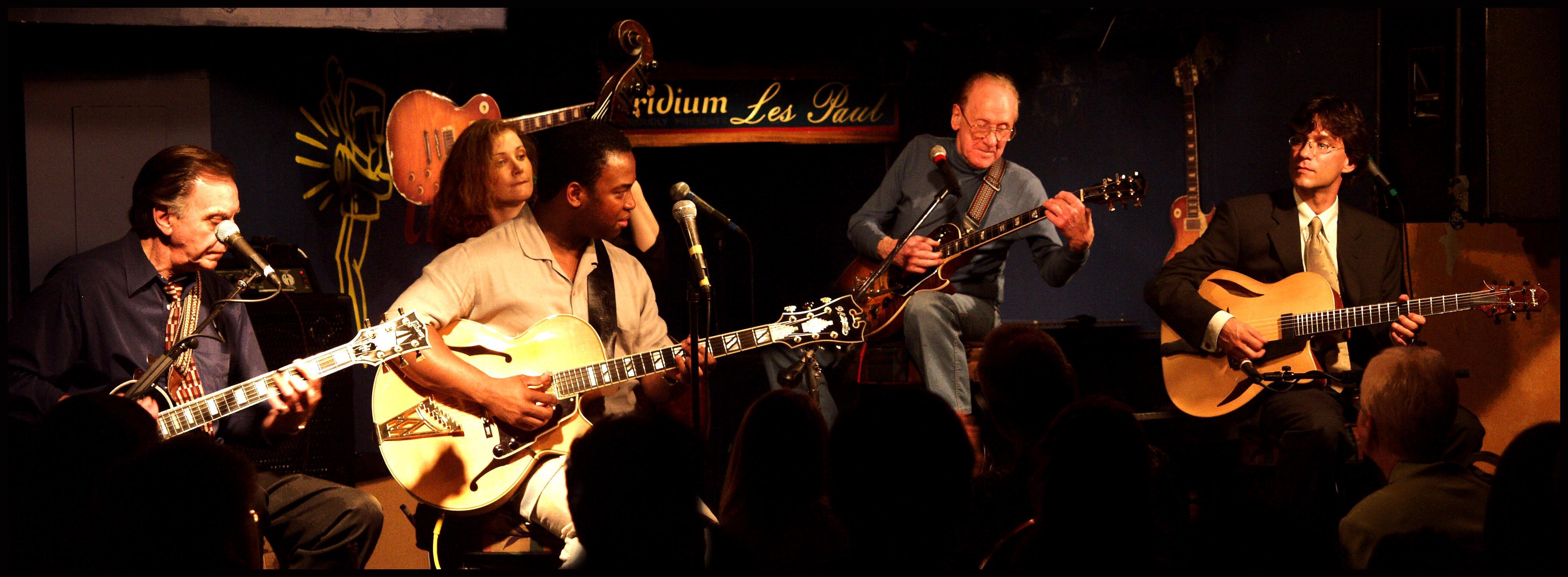 Lou, Nicki Parrott, Les Paul and Frank Vignola - Photo by Chris Lentz
